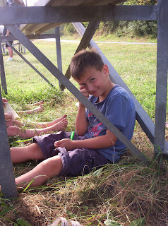 It has been different this fall to watch a SVU Women's Soccer game from the fan's side of the field, but I am adjusting. This was the third home game of the season and The kids and I went to watch. As you can see Jared and Anna weren't really interested in the game. I don't know what it is about bleachers that is so appealing but for whatever reason that was the place to be. They had fun jumping from the steps, making beds out of grass, and poking the feet of the fans from under the bleachers. It was a fun afternoon except that the girls lost the game. (It is a rebuilding year)